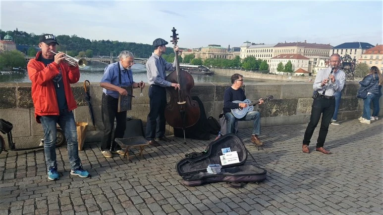 이 다리를 풍성하게 해 주는 것은 다리 주변의 풍경뿐만이 아닙니다. 아까 들려오던 황홀한 음악을 연주해주는 악사들, 꼭두각시로 꼬마 친구들 뿐만 아니라 다 큰 성인도 신나게 만드는 광대, 멋진 이 광경을 그리는 화가들이 다채로운 각자의 색깔로 다리를 꾸미고 있습니다. 그리고 마지막 화룡점정으로 수많은 커플들이 사랑을 속삭이면 세상 그 어떤 다리보다 멋진 카를교가 완성됩니다.