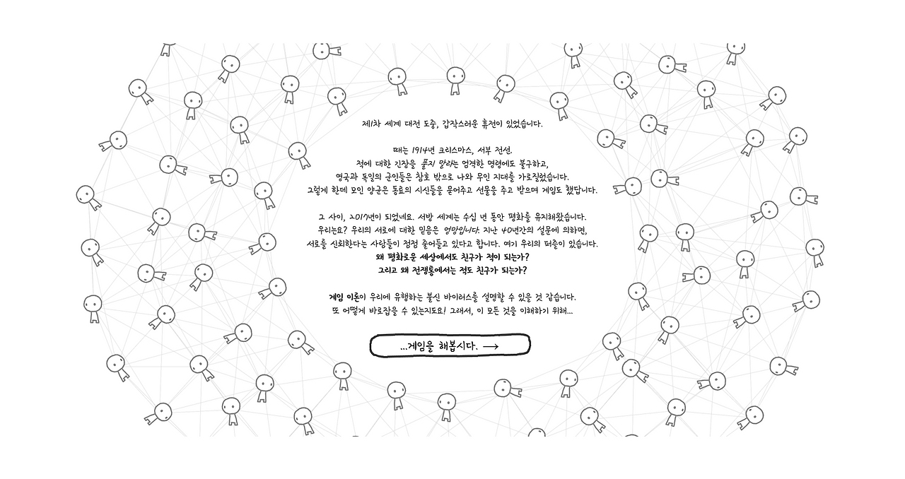 세계 1차 대전 속 총알이 빗발치는 전쟁 속에서도 평화가 있었고 신뢰가 있었습니다. 방금까지 서로를 죽이고 총알과 포탄을 날리던 적군이지만 그들 사이에서도 잠깐의 평화가 찾아왔습니다. 그 평화는 서로의 신뢰 속에서 처음으로 나타났습니다. 과연 우리는 무작정 누군가를 믿고 목숨을 건 전쟁터에서 적군에게 다가갈 수 있었을까요?