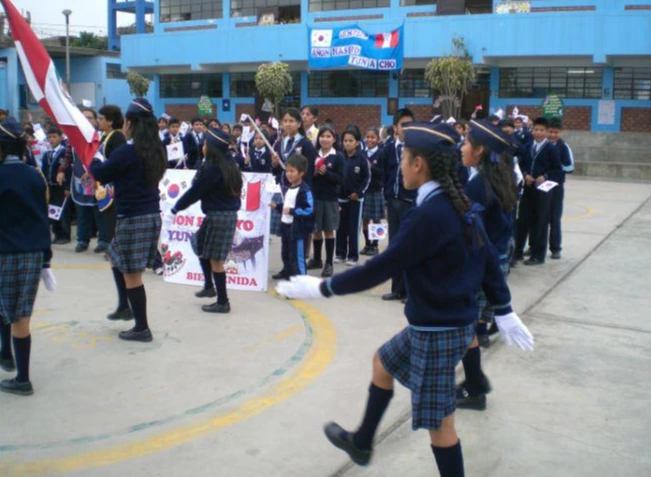 하지만 학교에 점점 가까워질수록 긴장이 된다. 한국에서 온 봉사 단원의 신분으로 파견 근무지에 처음 방문하는 자리인데 현지어인 스페인어를 제대로 할 줄 모르니 엄청 떨리고 걱정스러웠다. '인사만 할 줄 아는 내가 정말 이 곳에서 일을 할 수 있을까? 처음이니 조용히 슬쩍 인사만 하고 나와야겠다.' 라며 복잡한 마음을 가다듬고 문을 열었더니 태극기와 페루 국기를 손에 쥔 학생들이 큰 함성과 함께 열렬하게 환대를 하는 것이 아닌가.