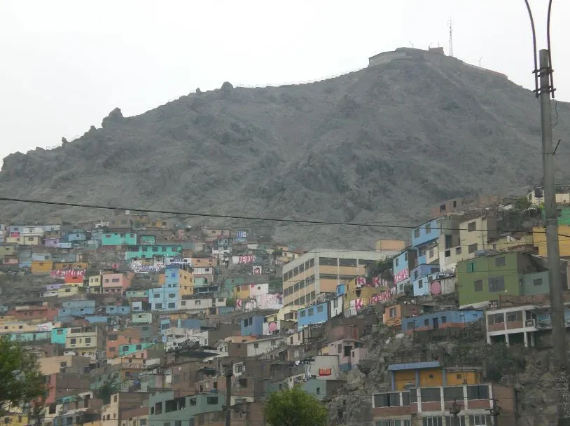 반대쪽으로는 좁은 길을 따라 전망대가 위치한 산 끄리스또발(San Cristobal)이 있다. 저 언덕 아래로는 다닥다닥 붙은 집들을 볼 수 있는데 길가에서 호객행위를 하는 직원에게 물어 버스를 타고 전망대로 갔다.
