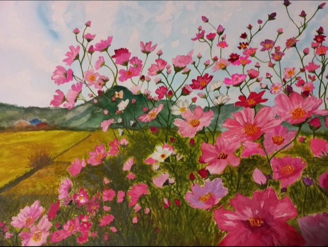 어르신은 연필드로잉을 시작으로 문구점에 직접 가서 아크릴 물감을 상점주인에게 물어가며 샀다. 그리는 방법도 물어봤다. 그렇게 준비하고 연습해서 캠퍼스에 그리기 시작했다. 직접 찍은 사진을 보고 혼자 터득한 방법으로 그린 아크릴회는 색감이며 구도, 표현력등 정말 감탄스러웠고 한편 반성하게 했다.