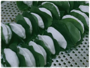 이런 순서대로 무한 반복해서 양만큼 송편을 만든 후 찜 솥에 올려 쪄주면 맹감잎 송편이 된다.