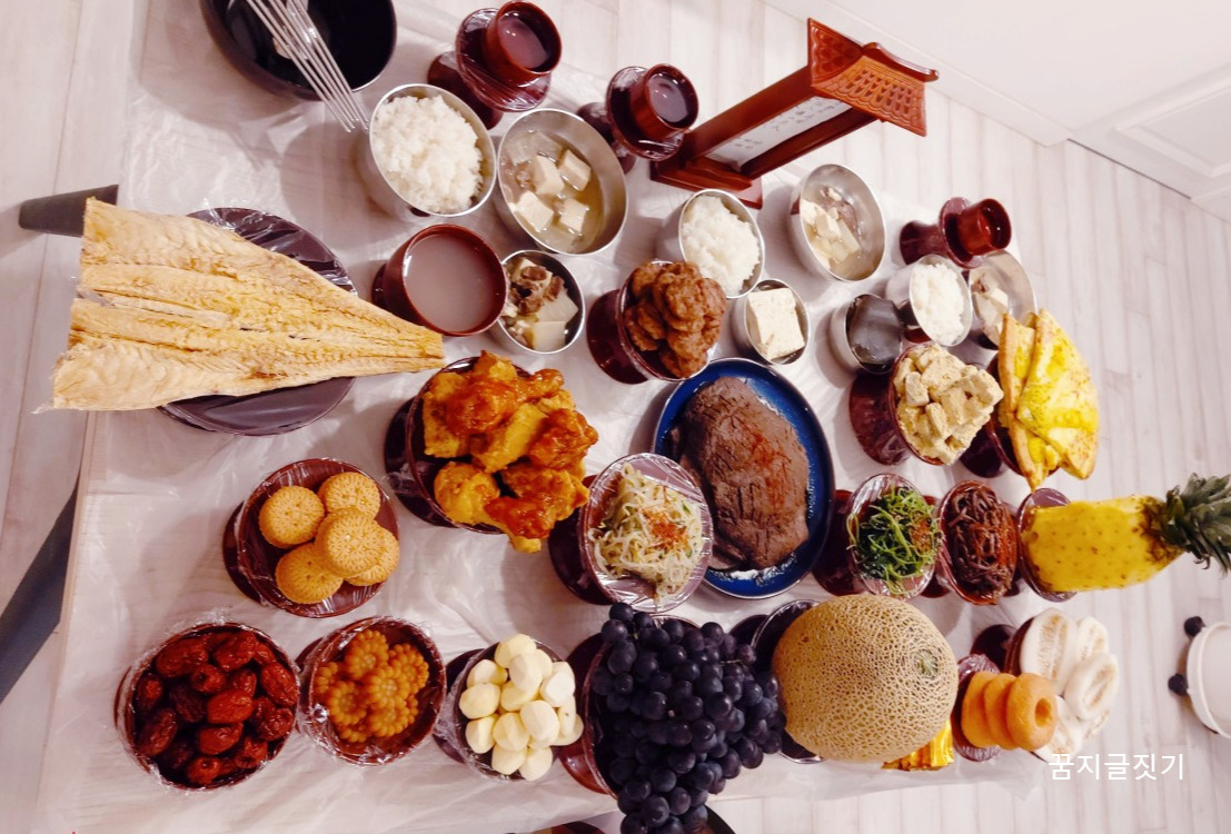 이번 여름에 있었던 제사에는 비가 많이 와서 품질이 떨어지지만 값은 금값인 사과, 배, 단감 대신 파인애플, 샤인머스크, 멜론 등의 과일로 대체되었다. 전은 빠졌고 비비고 동그랑땡으로 에어프라이에서 구워졌다. 치킨과 피자도 올라갔다.