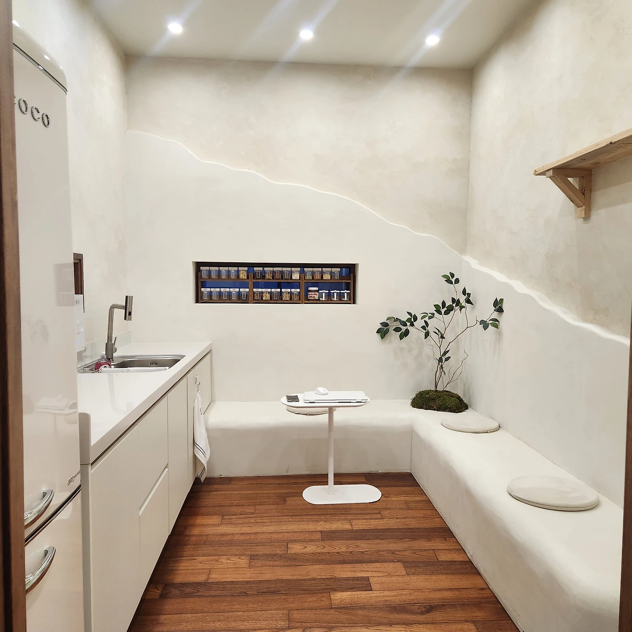 홀을 운영하진 않지만 종종 지인들이 찾아와 주곤 한다. 그렇게 우리 주방을 보면 놀란다. 여기서 그 많은 메뉴들이 만들어진다고? 하면서 말이다. 그건 메인주방에 최적화될 수 있도록 소분을 해놓고, 창고공간에서 그 외 부분들을 다 할 수 있도로 배치하였기에 가능했다.