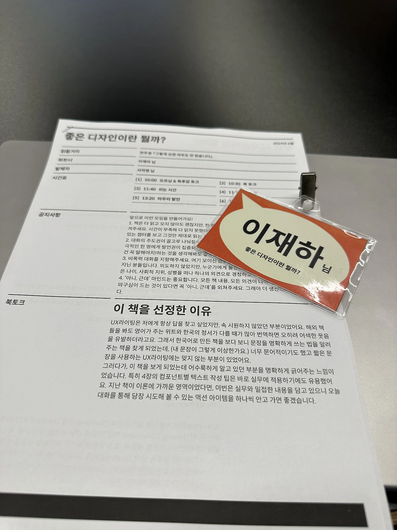 UX 디자인에 대한 역량을 높이기 위해 관련 독서모임에 참여하기도 했습니다.