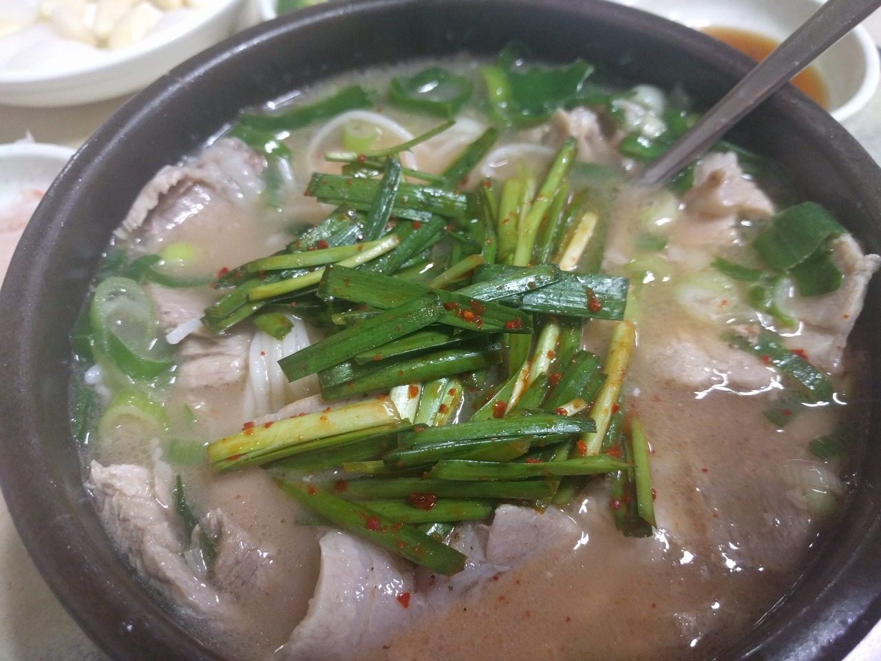 "아니, 이거 절대 이상한 거 아니고 너네 서울 사람들이 먹는 순댓국하고 비슷한 거야. 순댓국에서 순대만 빼고 나면 돼지국밥하고 얼추 비슷해."