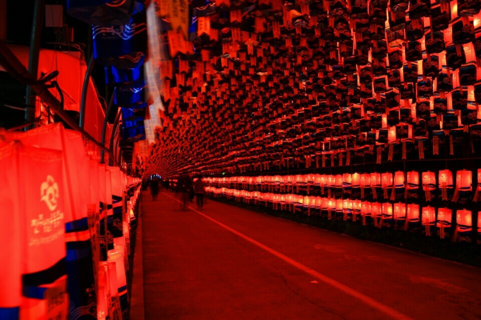 그런데 이 수많은 유등들은 누가 만드는 것이냐. 어딘가의 업체에 외주를 주는 게 아니다. 바로 진주 학생들이다. 이곳의 모든 초중고교 학생들은 가을 무렵이면 '미술 수행평가'라는 이름으로 제각기 열심히 등을 만든다. 개중 괜찮은 것들은 선별돼서 거리에 내걸린다. 정말 잘 만든 작품들은 한 군데 모아서 전시를 한다. 전시장에서 행적을 찾아볼 수 없으면 본인의 등을 찾아 진주 온 거리를 헤매는, 연등 찾아 삼만리의 고생을 해야 한다. 공물로 바쳐지는 바람에 강제 이별을 당한 내 등을 찾아다니면서 생각했다. 아주 잘하거나 아주 못하거나 하지 않고 애매하게 곧잘 하면 이런 고생을 하는구나. 오랜만에 마주하는 연등들을 보며 아내에게 짐짓 자랑했다.