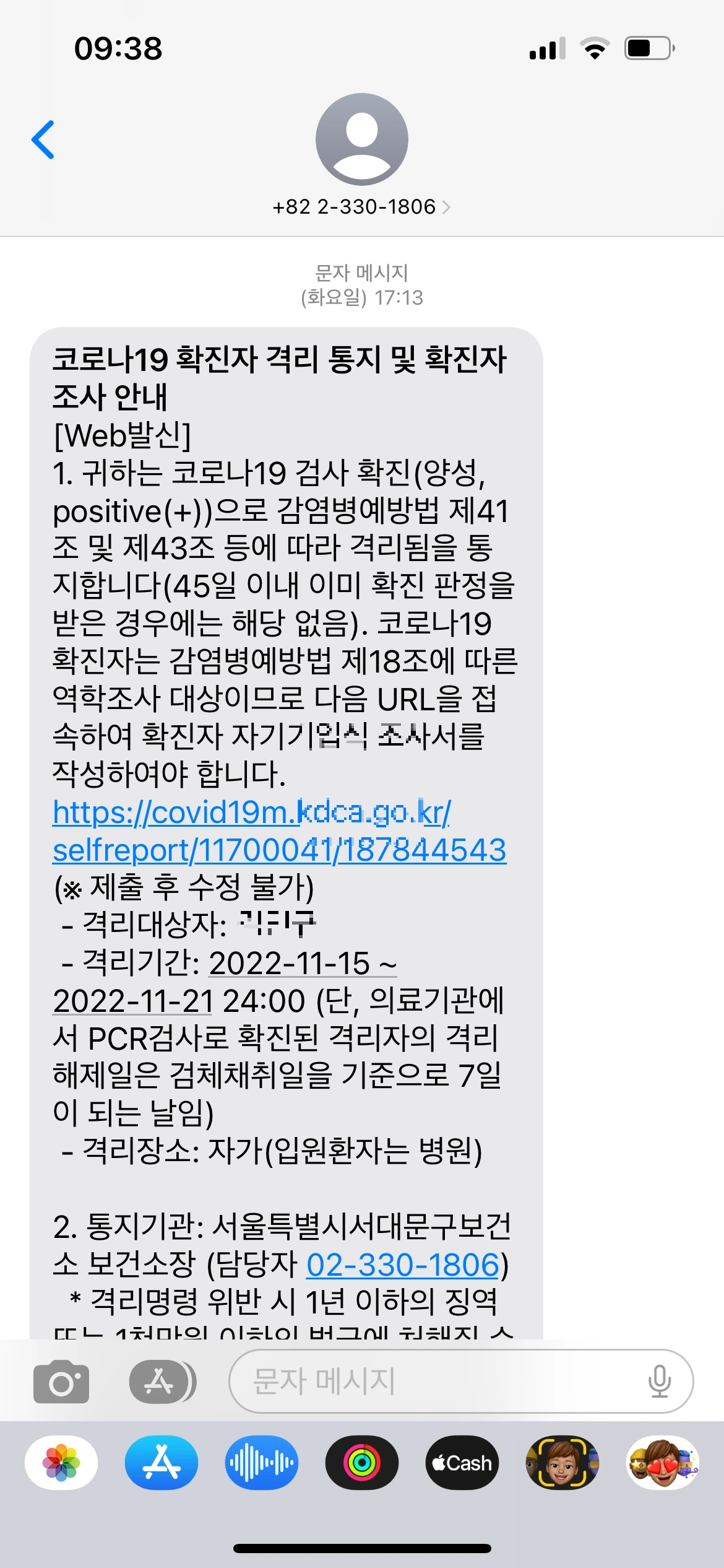 아이가 코로나19 양성이란다. 오늘 월요일부터 7일간 격리해야 한단다.