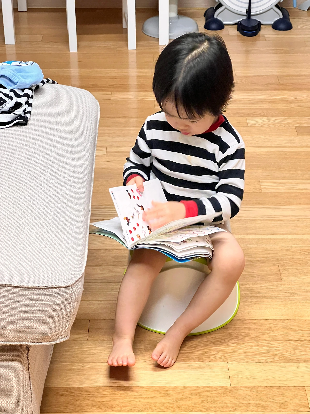 이제는 유아용 소변기도 졸업했다. 어른 변기에 올라가서 대소변을 본다