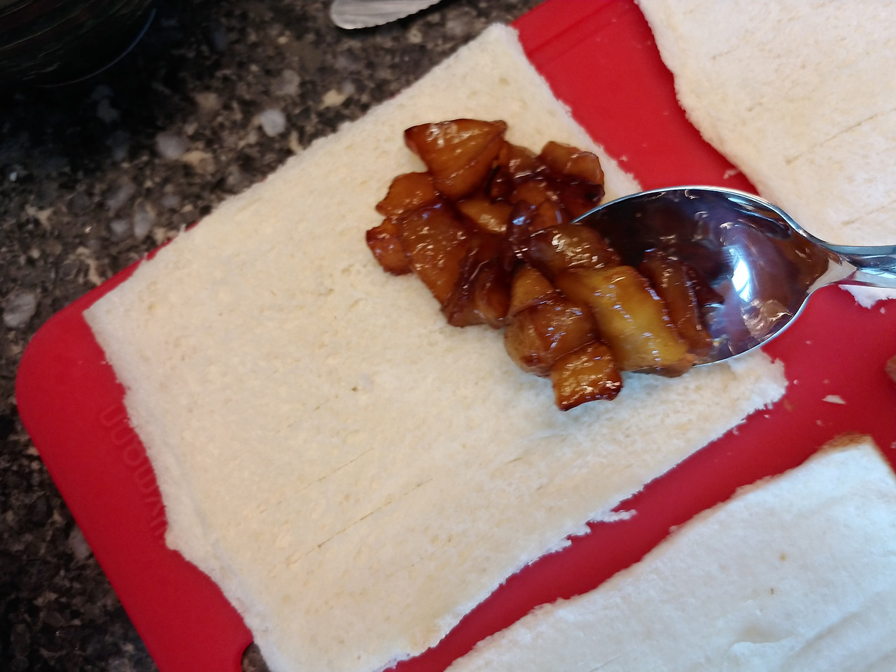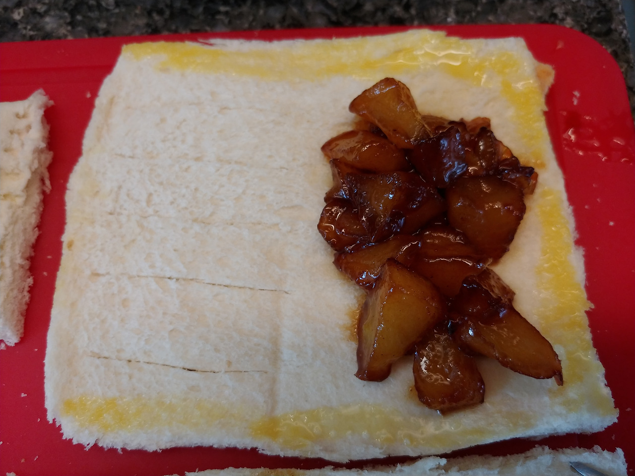 땀을 삐질삐질 흘리면서 식빵을 납작하게 누르고 있는 동안 사과 속이 적당하게 졸아들었다. 달큰한 냄새가 온 집안에 진동한다.