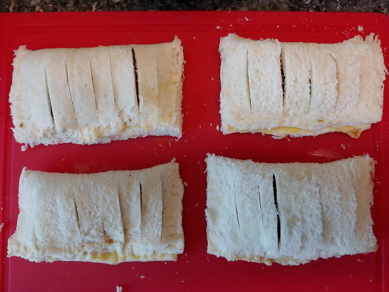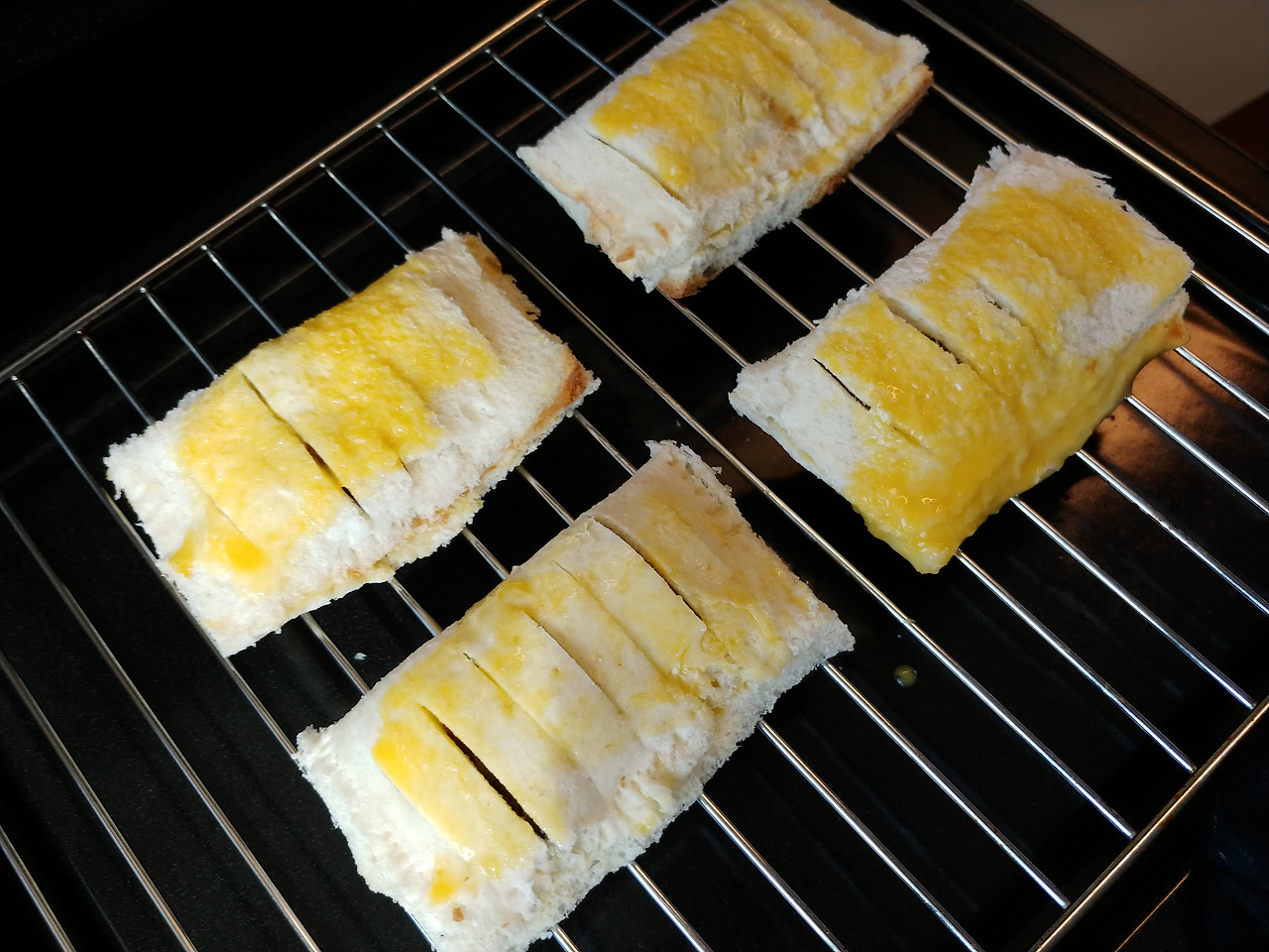 보기좋은 떡이 먹기도 좋다고 했다. 어디서 본 건 있어 가지고 빵에다가 칼집을 내 봤다. 요리 만화를 보면 바게트 빵이건 무슨 빵이건간에 칼집같은 건 필수더라.