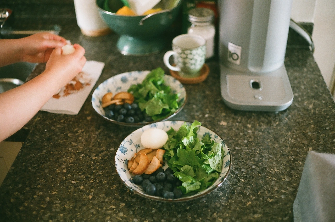 이대로는 도저히 안되겠다 싶어서 아내와 함께했던 다이어트 식단 (샐러드, 삶은 계란, 구운 버섯, 블루베리)