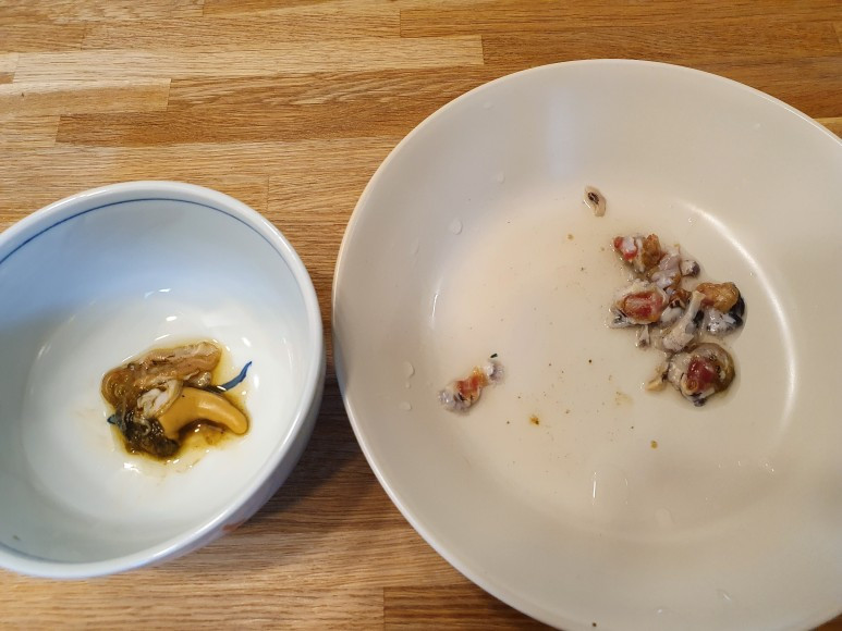 (두 번째 전복 손질 땐 기어코 손가락을 베어서 유혈사태가 벌어지고 말았다. 고무장갑을 꼈어야 했다)