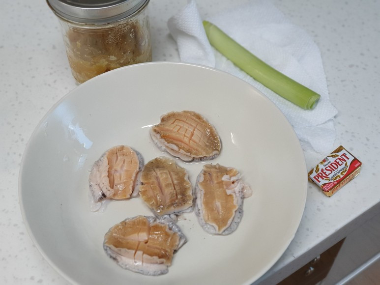 모든 재료가 준비되었다. 오늘은 사실 요리랄 것도 없다. 팬에다 버터를 두르고 전복을 굽기만 하면 된다. 통마늘이 없으니까(어째 내가 요리할 때마다 집에 한두 개씩 재료들이 꼭 없더라) 간마늘을 좀 보태고 대파도 숭숭 썰어 넣으면 끝. 아주 간단한 전복 버터구이다.