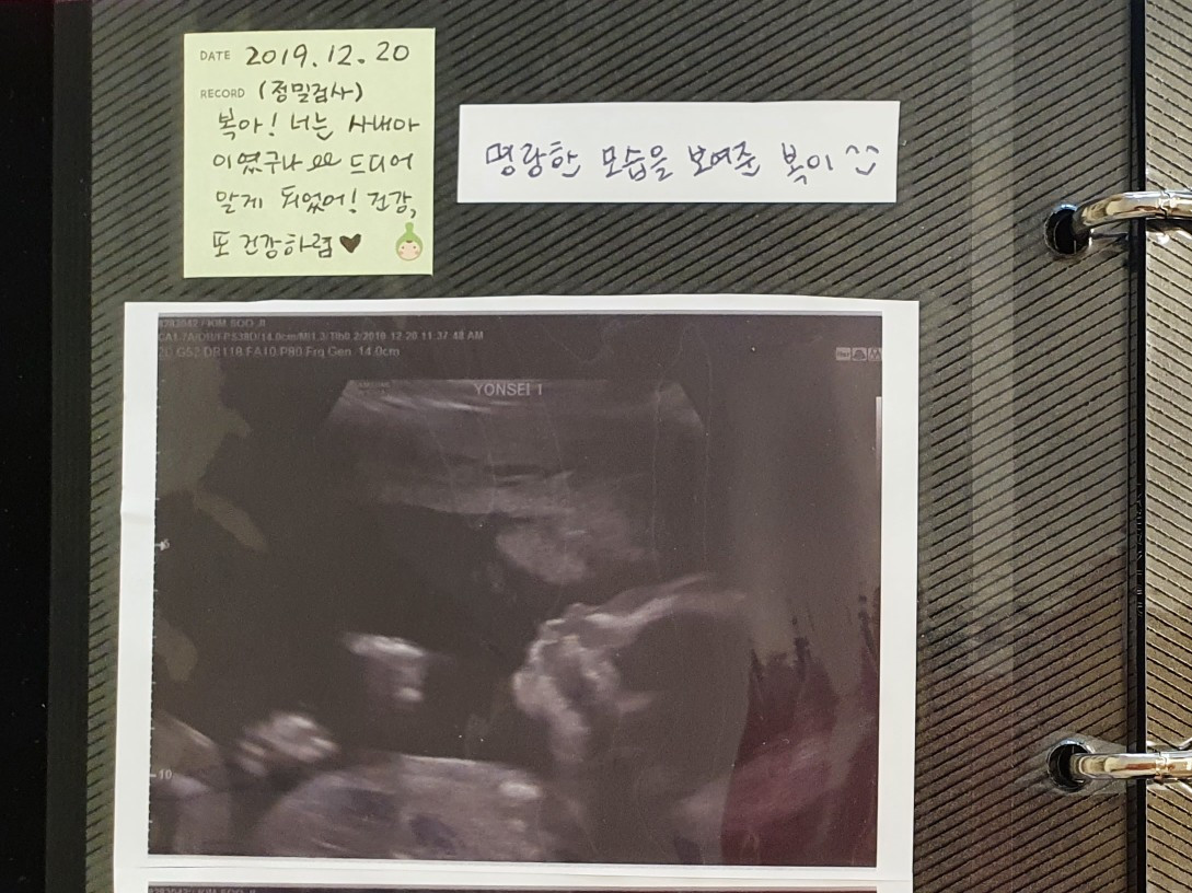 2019년 12월 20일. 임신을 확인하고 거의 네 달이나 지나서야 마침내 아이의 성별을 알게 됐다. 배 속의 아이는 아들이라고 했다. 엄연히 법이 금지하고 있는지라 직접적으로 알려주진 않고 가벼운 힌트가 섞인 말을 해 준다.