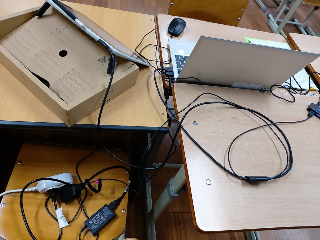 코로나로 인해 원격수업이 시작된 지도 2년 가까이 되고 있다. 작년 초반의 대혼란을 생각하면 식은땀이 흐르지만 지금은 모든 게 안정적이다. 다만 이러한 급물살이 가히 긍정적이지만은 안다는 생각이다. 작년 초반에 비해 기기들이 점점 업그레이드되면서 다양한 최신 기기들이 교실 한 자리를 차지하고 있다. 외부기기인 노트북, 대형 TV, 와콤(전자유도식 무전원 펜)은 물론 각종 프로그램들이 pc에 설치되어 있다. 그러다 보니 담임은 아침마다 양손에 기기들을 잔뜩 들고 교실에 가서 설치하기가 바쁘다.