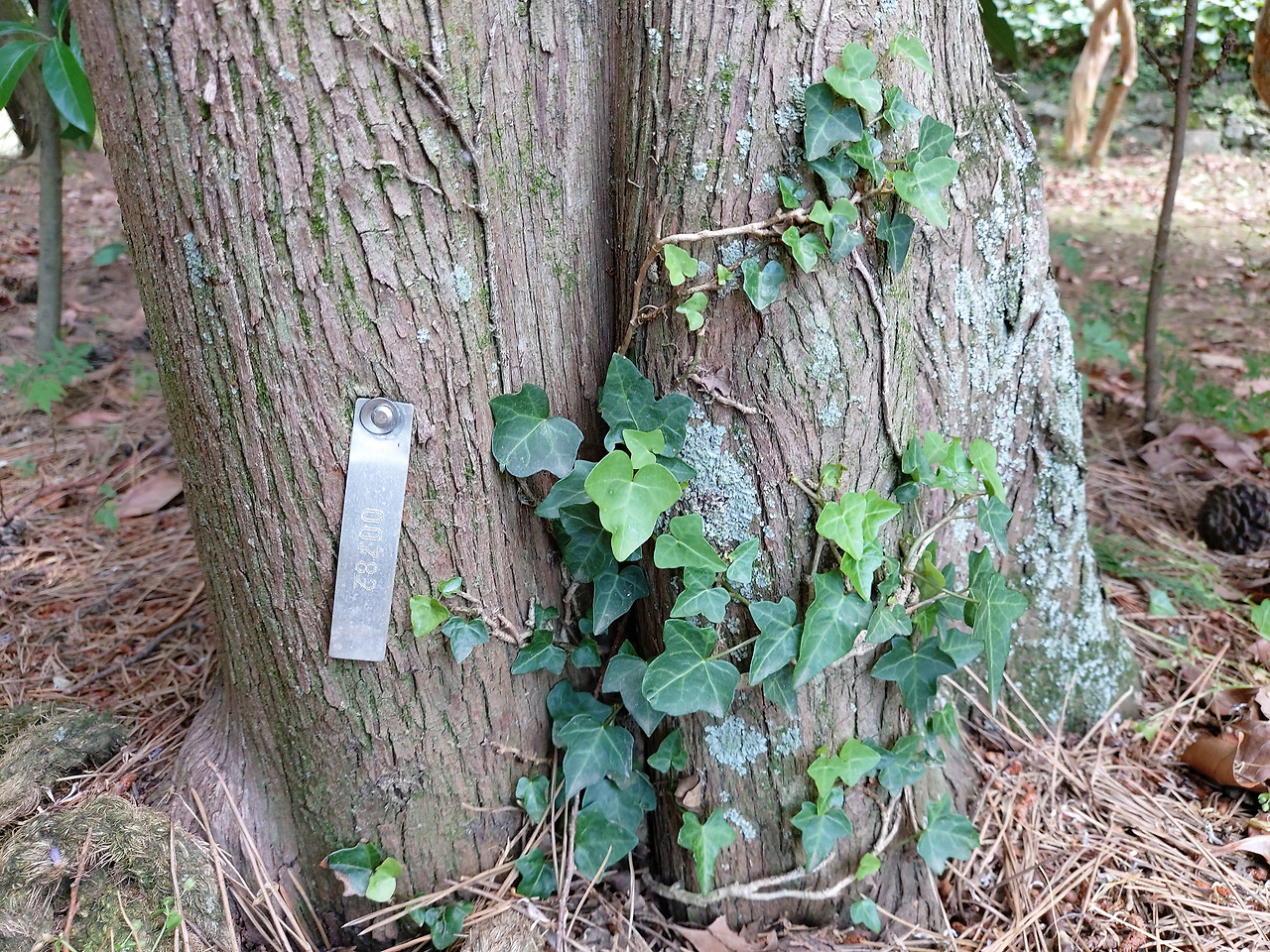 숲길을 걷다 보니 제법 큰 나무들에는 이름표가 붙어 있다. 흔히 우리가 명품이라 하는 물건에도 고유번호가 있는데 어찌 인간의 계산법을 자연에 적용시켜 저리 못질을 해놓았을까.