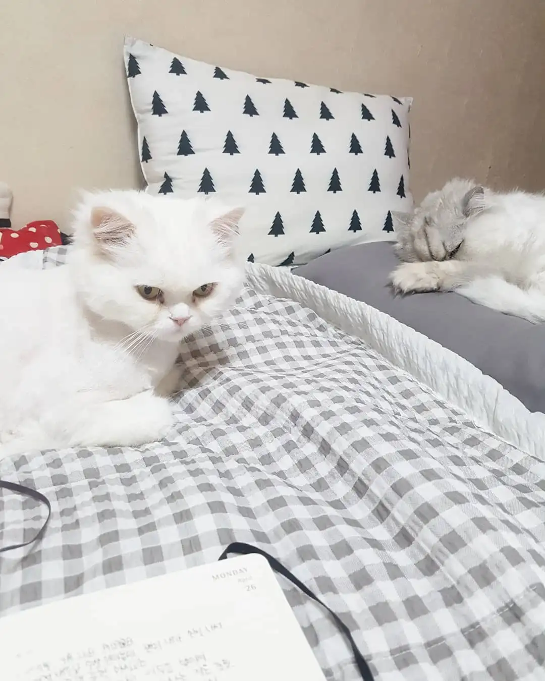 고양이들이 자고 있는 내 침대 주위를 돌며 야옹거리는 건 놀아달라는 거라고 생각했는데, 아니라 내가 누워있는 침대에 자신들이 눕기 위함이었나 보다.