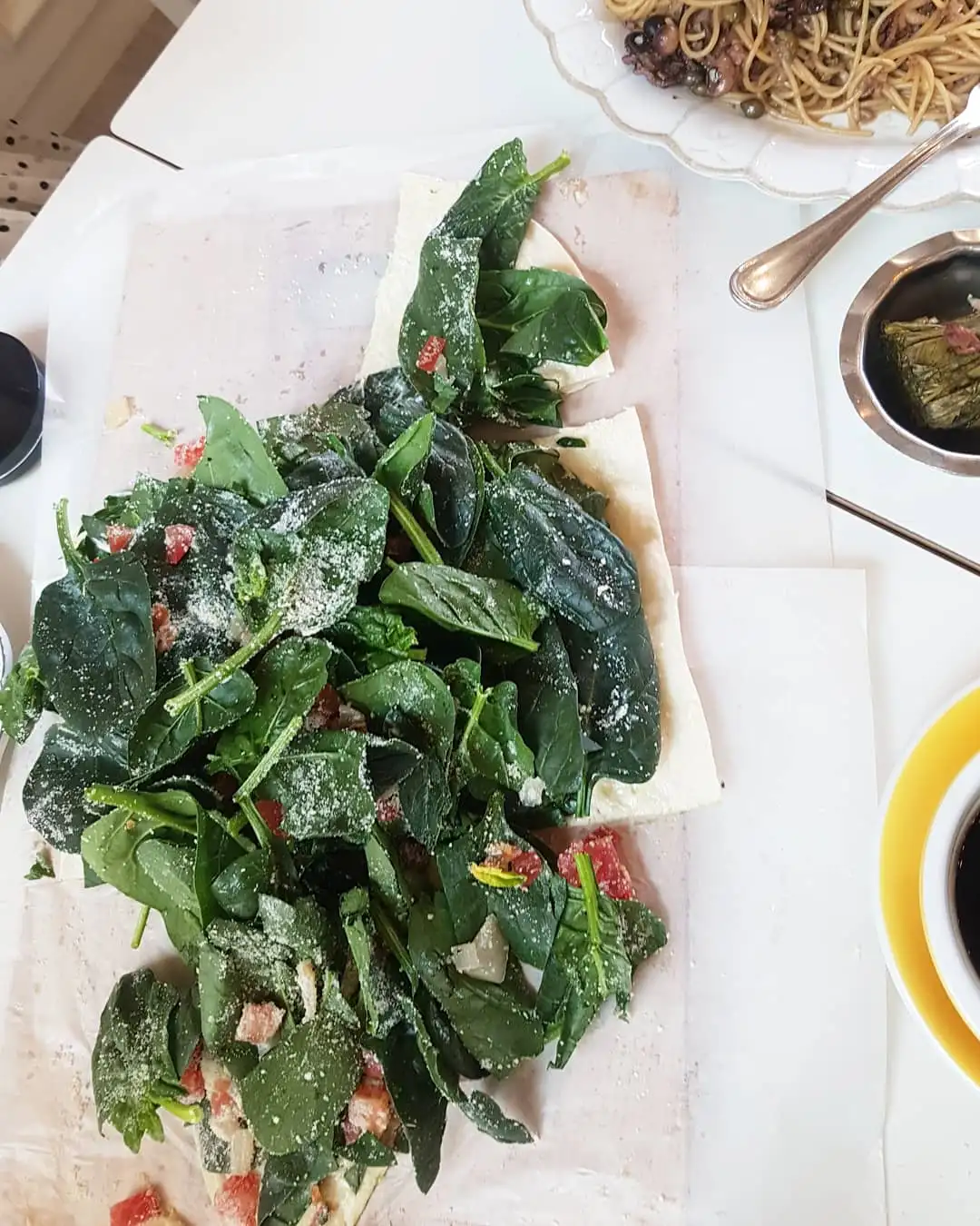 나온 메뉴는 너른 들판을 종종 걸으며 직접 채집한 수확물의 느낌이 가득한 산더미 같은 시금치였다.