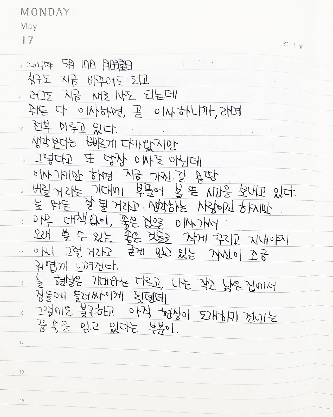 침구도 지금 바꾸어도 되고 러그도 지금 새로 사도 되는데 뭐든 다 이사하면, 곧 이사하니까, 라며 전부 미루고 있다. 생각보다는 빠르게 다가왔지만 그렇다고 또 당장 이사도 아닌데, 이사 가기만 하면 지금 가진 걸 몽땅 버릴 거라는 기대에 부풀어 붕 뜬 시간을 보내고 있다. 늘 뭐든 잘 될 거라고 생각하는 사람이긴 하지만 아무 대책 없이, 좋은 집으로 이사 가서 오래 쓸 수 있는 좋은 것들로 작게 꾸리고 지내야지 아니 그럴 거라고 굳게 믿고 있는 자신이 조금 귀엽게 느껴진다. 늘 현실은 기대와는 다르고, 나는 작고 낡은 집에서 짐들에 둘러싸이게 될 텐데 그럼에도 불구하고 아직 현실이 도래하기 전에는 꿈 속을 믿고 있다는 부분이.