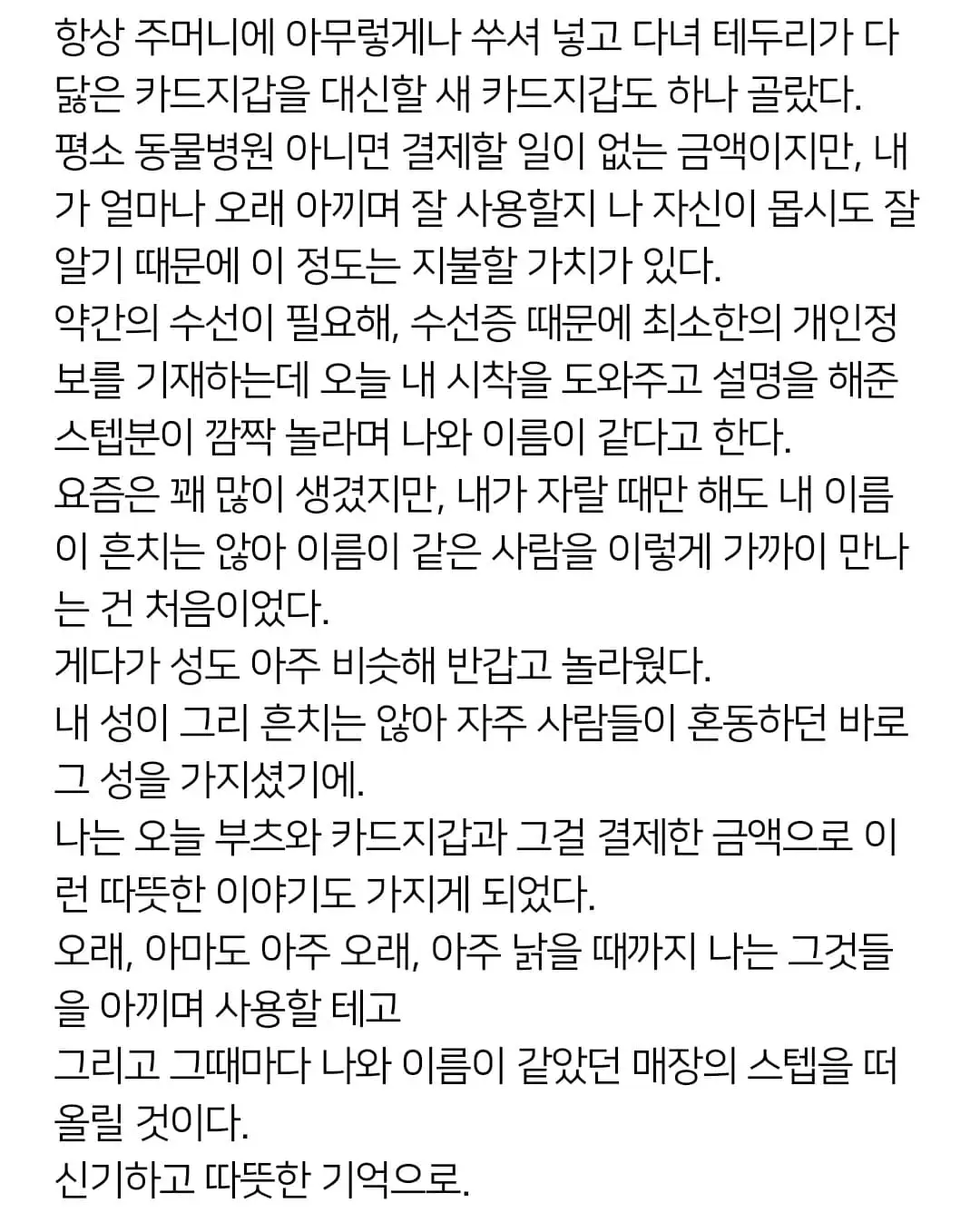 나는 오늘 부츠와 카드지갑과 그걸 결제한 금액으로 이런 따뜻한 이야기도 가지게 되었다.