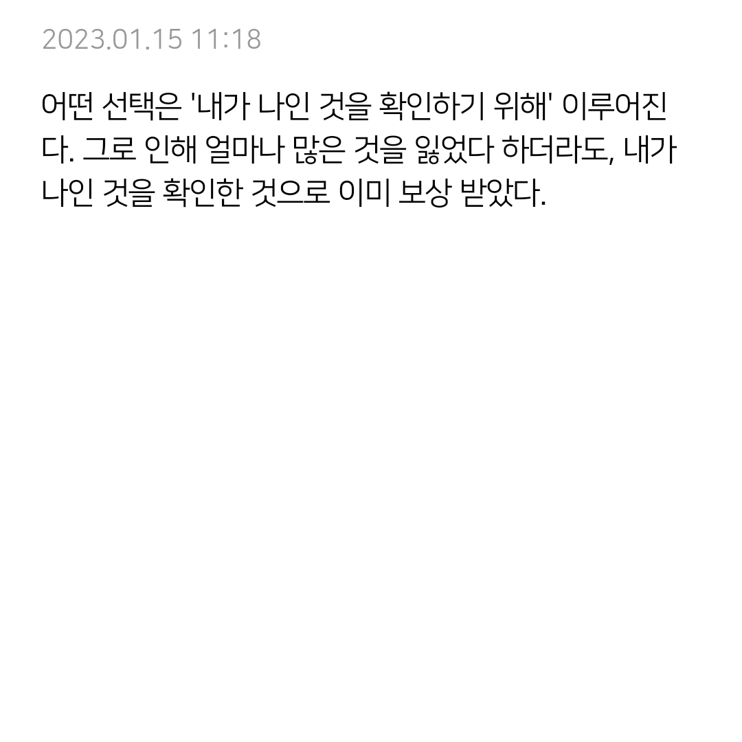 어떤 선택은 '내가 나인 것을 확인하기 위해' 이루어진다. 그로 인해 얼마나 많은 것을 잃었다 하더라도, 내가 나인 것을 확인한 것으로 이미 보상 받았다.