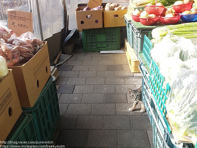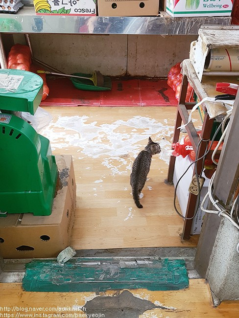 계산을 하고 나니 갑자기 구석에서 아기 고양이 두 마리가 뛰어나온다.