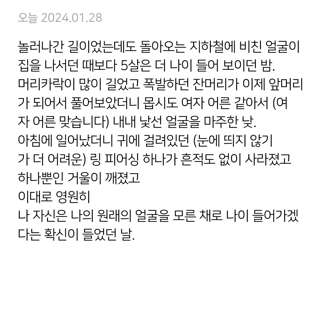 나 자신은 나의 원래의 얼굴을 모른 채로 나이 들어가겠다는 확신이 들었던 날.