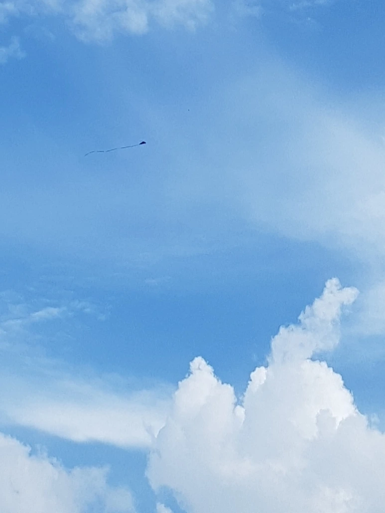 오랜만에 맑은 하늘을 마주하는 것 같아 뭉게뭉게 구름을 올려다보고 있자니 구름 사이로 연이 하나 떠 있다.