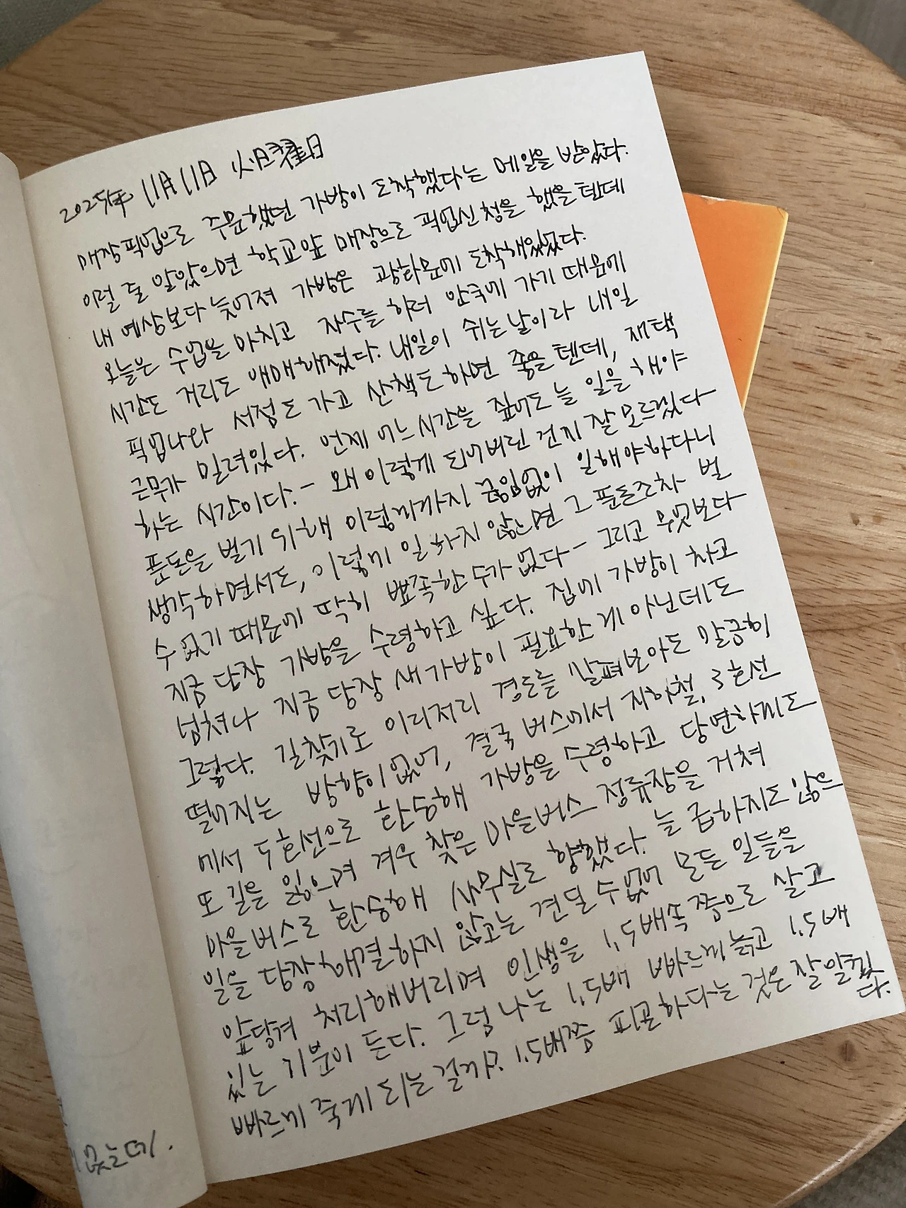 매장 픽업으로 주문했던 가방이 도착했다는 메일을 받았다. 이럴 줄 알았으면 학교 앞 매장으로 픽업 신청을 했을 텐데 내 예상보다 늦어져 가방은 광화문에 도착해 있었다. 오늘은 수업을 마치고 자수를 하러 안국에 가기 때문에 시간도 거리도 애매해졌다. 내일이 쉬는 날이라 내일 픽업 나와 서점도 가고 산책도 하면 좋을 텐데 재택근무가 밀려 있다. 언제 어느 시간을 짚어도 늘 일을 해야 하는 시간이다. -왜 이렇게 되어 버린 건지 잘 모르겠다. 푼돈을 벌기 위해 이렇게까지 끊임없이 일해야 하다니 생각하면서도 이렇게 일하지 않으면 그 푼돈조차 벌 수 없기 때문에 딱히 뾰족한 수가 없다. -그리고 무엇보다 지금 당장 가방을 수령하고 싶다. 집에 가방이 차고 넘쳐 나 지금 당장 새 가방이 필요한 게 아닌데도 그렇다. 길 찾기로 이리저리 경로를 살펴보아도 말끔히 떨어지는 방향이 없어, 결국 버스에서 지하철, 3호선에서 5호선으로 환승해 가방을 수령하고 당연하게도 또 길을 잃으며 겨우 찾은 마을버스 정류장을 거쳐 마을버스로 환승해 사무실로 향했다. 늘 급하지도 않은 일을 당장 해결하지 않고는 견딜 수 없어 모든 일들을 앞당겨 처리해 버리며 인생을 1.5 배속쯤으로 살고 있는 기분이 든다. 그럼 나는 1.5 배 빠르게 늙고 1.5 배 빠르게 죽게 되는 걸까? 1.5 배쯤 피곤하다는 것은 잘 알겠다.