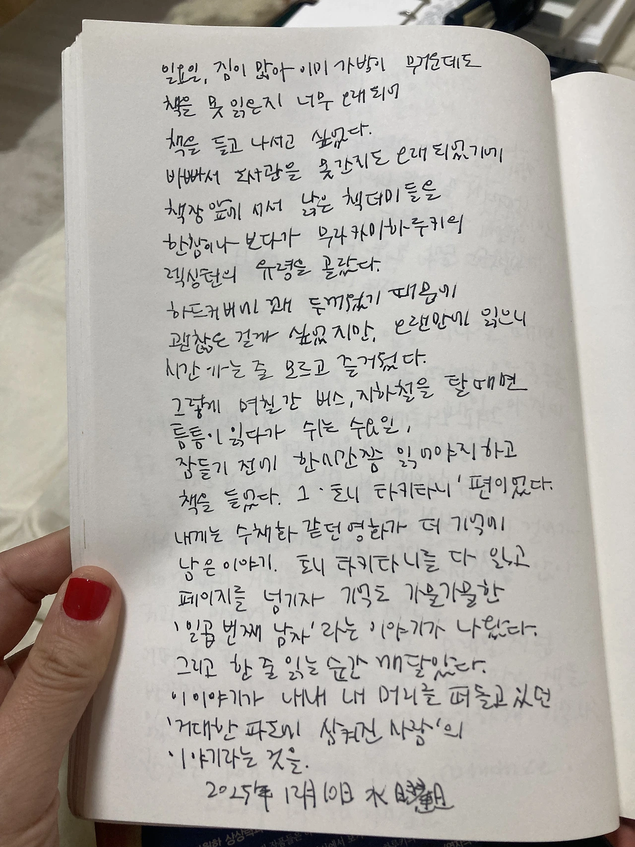 일요일, 짐이 많아 이미 가방이 무거운데도 책을 못 읽은 지 너무 오래되어 책을 들고 나서고 싶었다.