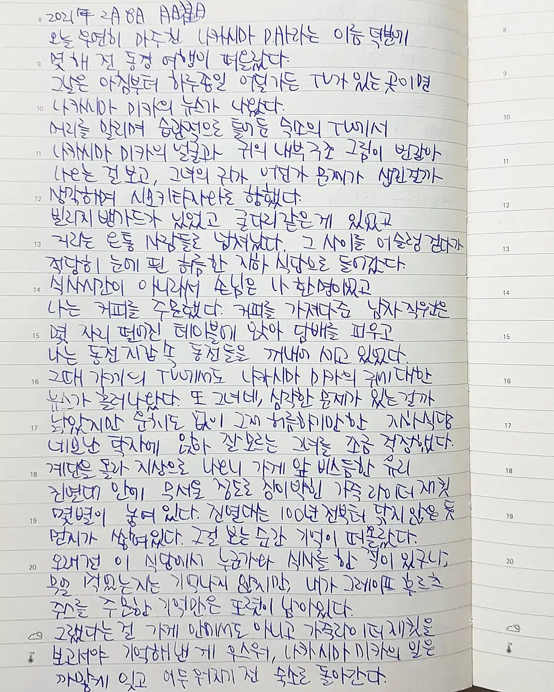 그랬다는 걸 가게 안에서도 아니고 가죽 라이더 재킷을 보고서야 기억해내 게 우스워, 나카시마 미카의 일은 까맣게 잊고 어두워지기 전 숙소로 돌아간다.