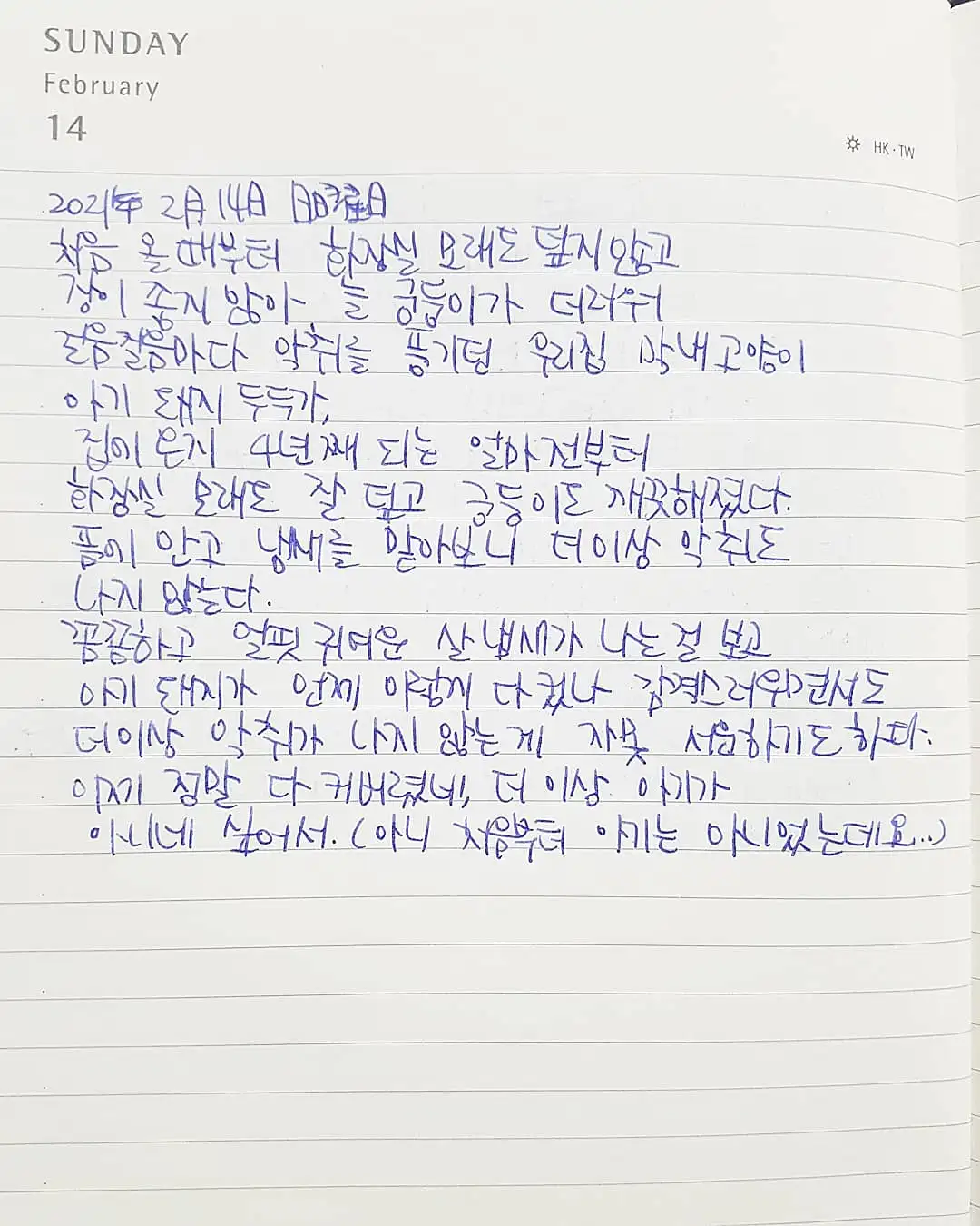 장이 좋지 않아 늘 궁둥이가 더러워 걸음걸음마다 악취를 풍기던 우리 집 막내 고양이 아기 돼지 두두가,