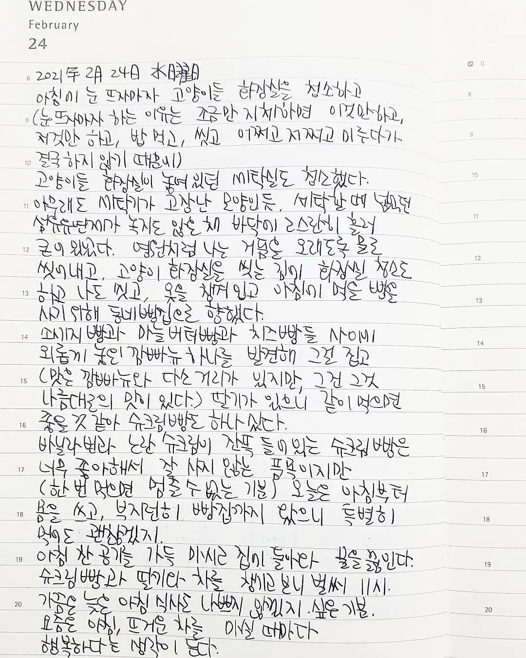 영원처럼 나는 거품을 오래도록 물로 씻어내고, 고양이 화장실을 씻는 김에 화장실 청소도 하고 나도 씻고, 옷을 챙겨 입고 아침에 먹을 빵을 사기 위해 동네 빵집으로 향했다.
