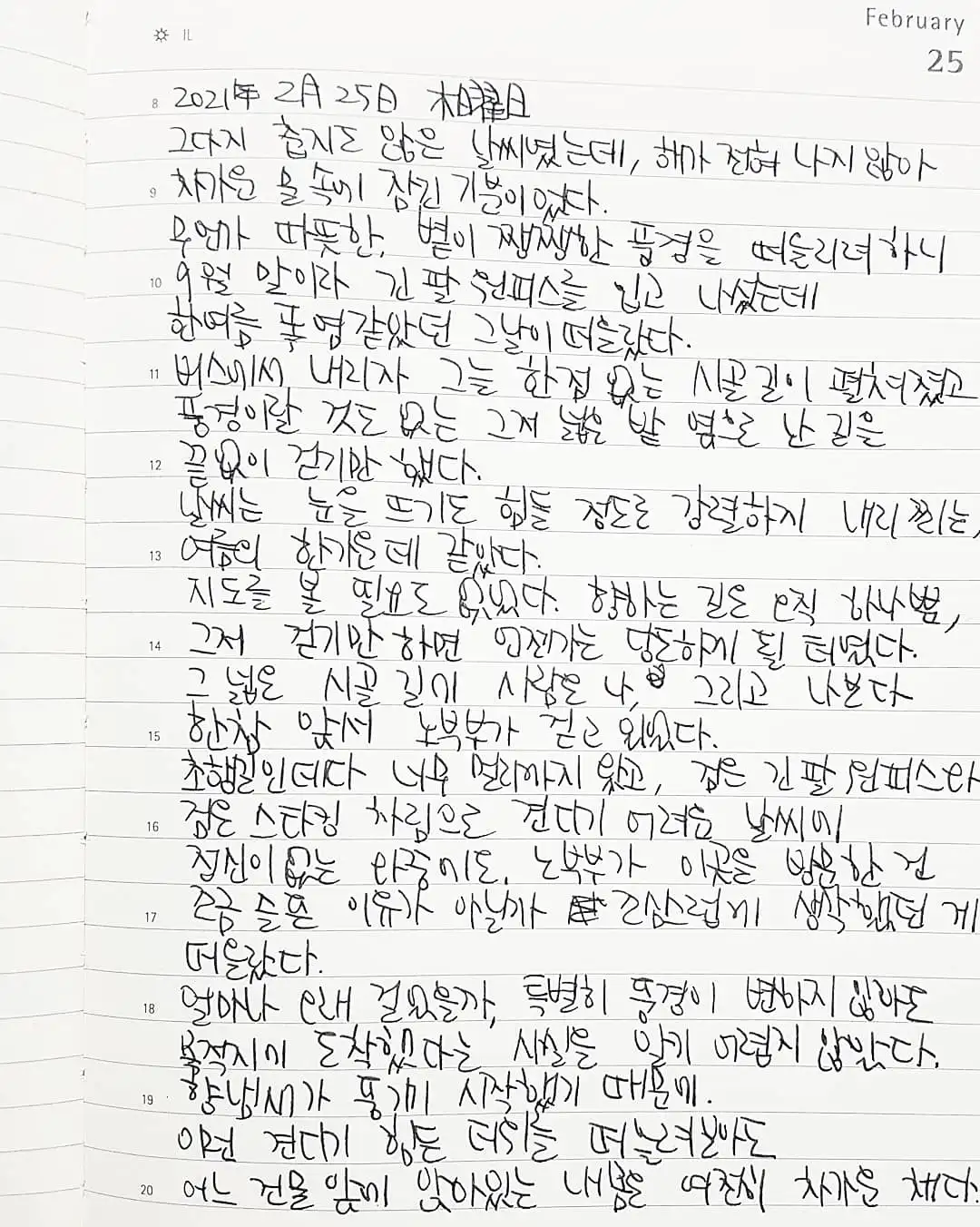 그 넓은 시골길에 사람은 나, 그리고 나보다 한참 앞서 노부부가 걷고 있었다.