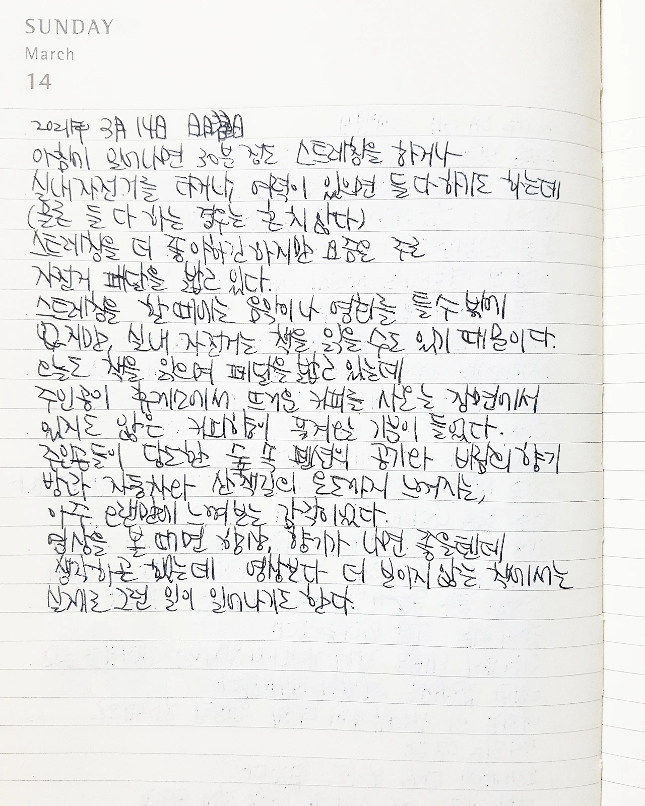 아침에 일어나면 30분 정도 스트레칭을 하거나 실내 자전거를 타거나, 여력이 있으면 둘 다 하기도 하는데(물론 둘 다 하는 경우는 흔치 않다)