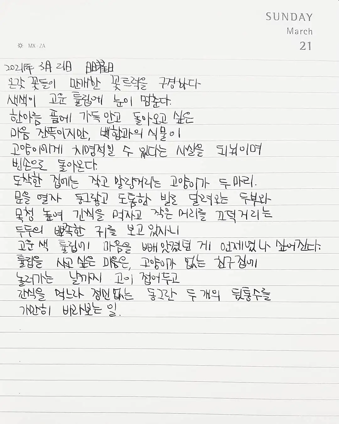 한 아름 품에 가득 안고 돌아오고 싶은 마음 잔뜩이지만, 백합과의 식물이 고양이에게 치명적일 수 있다는 사실을 되뇌며 빈손으로 돌아온다.