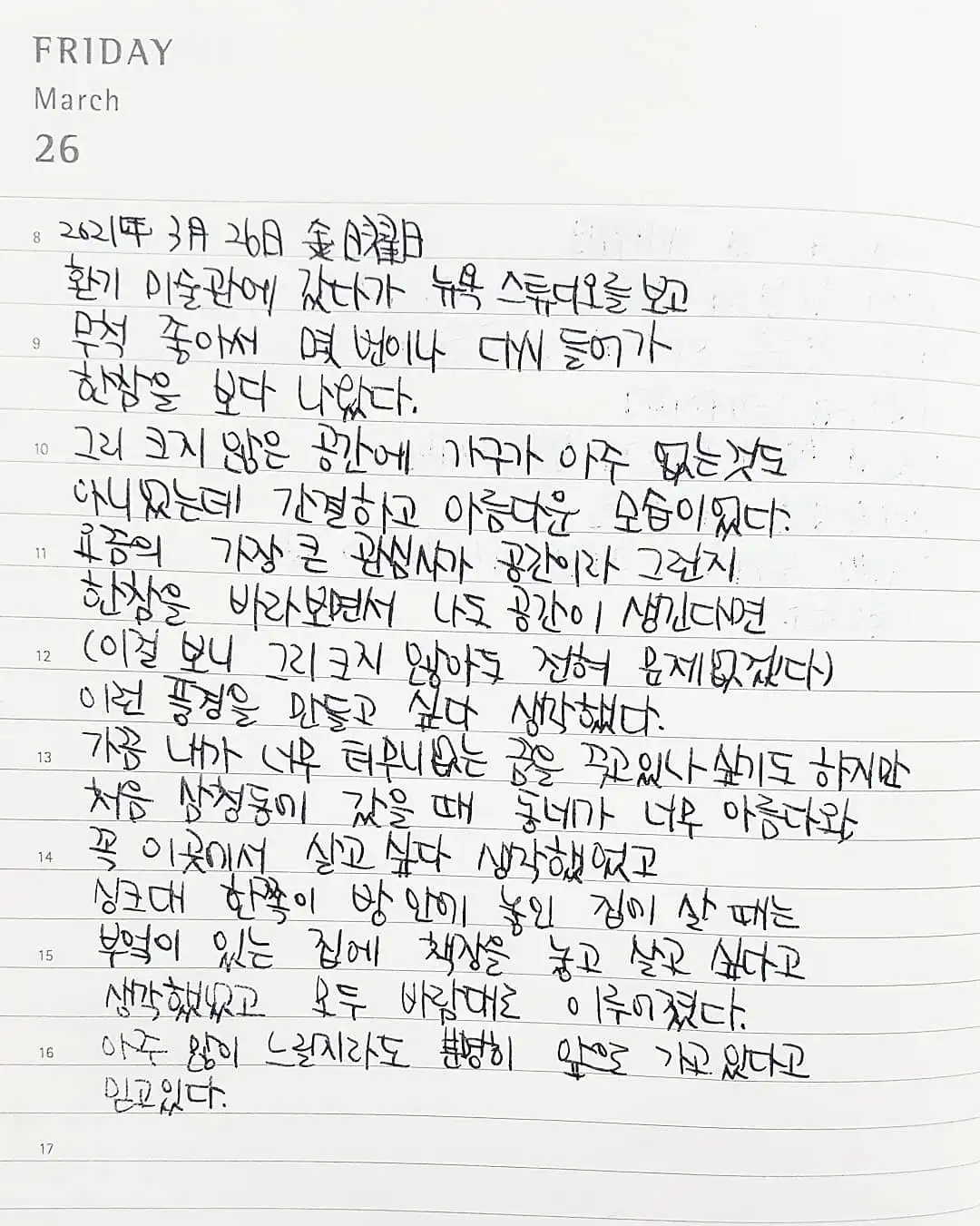 환기 미술관에 갔다가 뉴욕 스튜디오를 보고 무척 좋아서 몇 번이나 다시 들어가 한참을 보다 나왔다.
