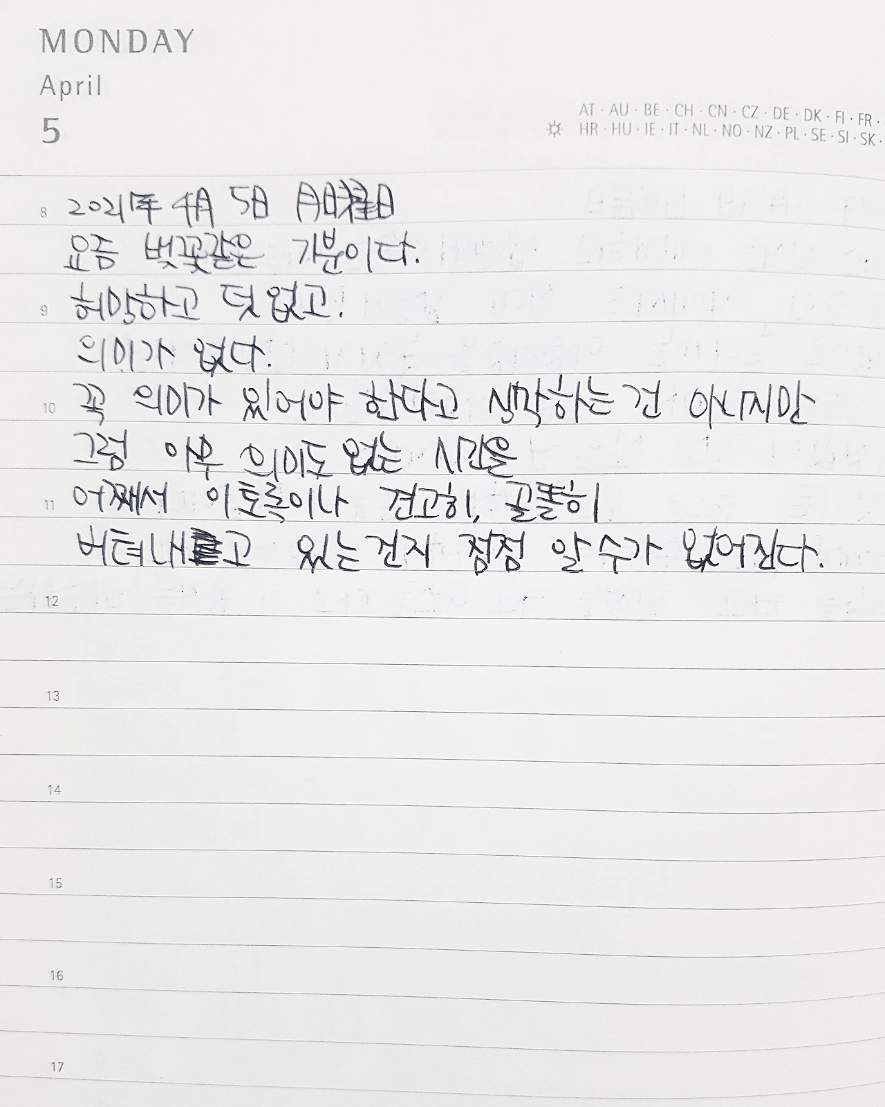 그럼 아무 의미도 없는 시간을 어째서 이토록이나 견고히, 골똘히 버텨내고 있는 건지 점점 알 수가 없어진다.