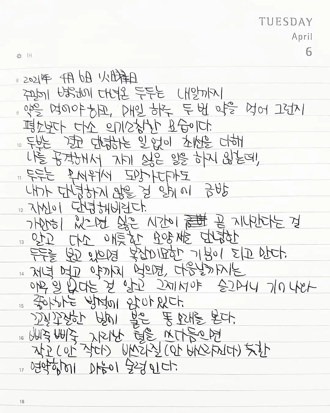 삐죽삐죽 자라난 털을 쓰다듬으면 작고(안 작다) 바스라질(안 바스라진다) 듯한 연약함에 마음이 술렁인다.