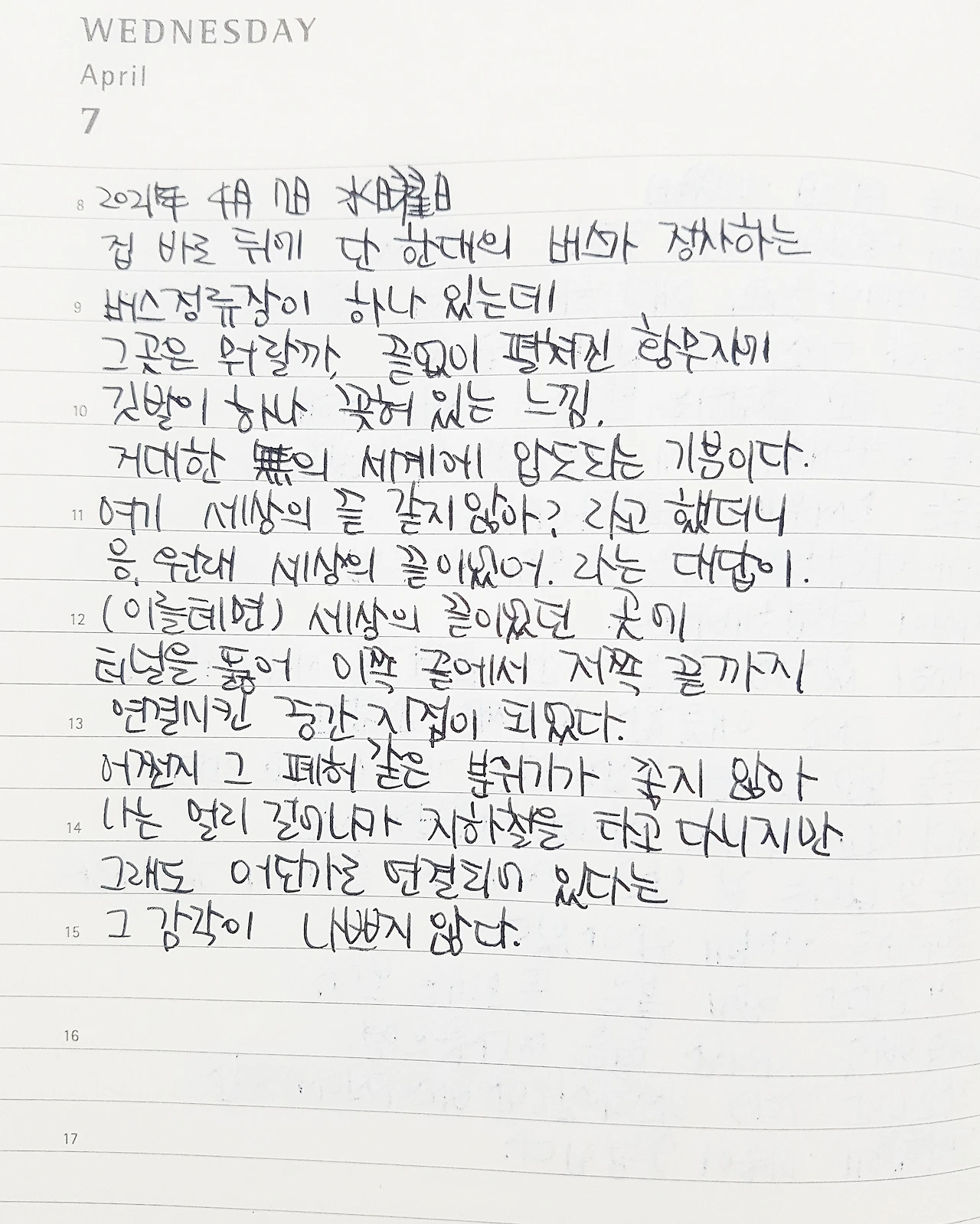 어쩐지 그 폐허 같은 분위기가 좋지 않아 나는 멀리 걸어 나가 지하철을 타고 다니지만, 그래도 어딘가로 연결되어 있다는 그 감각이 나쁘지 않다.