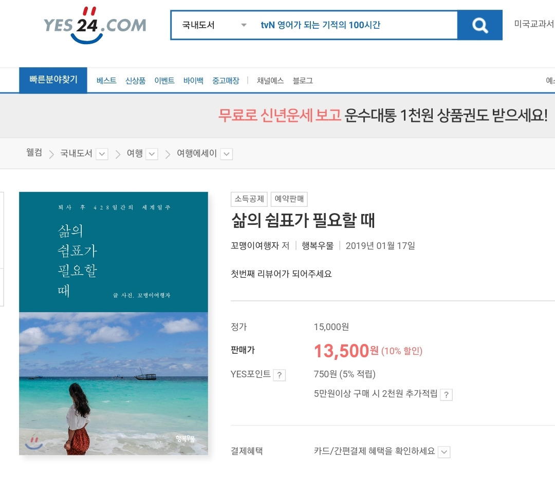 무명작가인 만큼 Yes24 단독 예약링크로 오픈하게 되었어요. 1월 17일 이후에는 다른 인터넷서점 링크도 풀리고, 전국 대형서점에도 오프라인으로 진열되게 됩니다. 감사하게도 오픈되자마자 Yes24의 선택도 받았어요!!