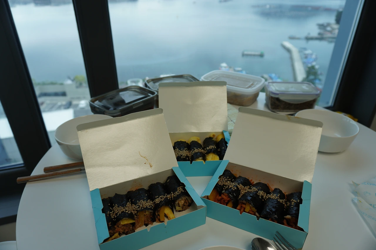 여수에서 그렇게 유명하다는 ‘바다김밥’과 함께 짬뽕라면을 끓여 점심을 해결했다. 김밥과 라면의 조합, 거기에 오션뷰. 무슨 말이 더 필요할까?