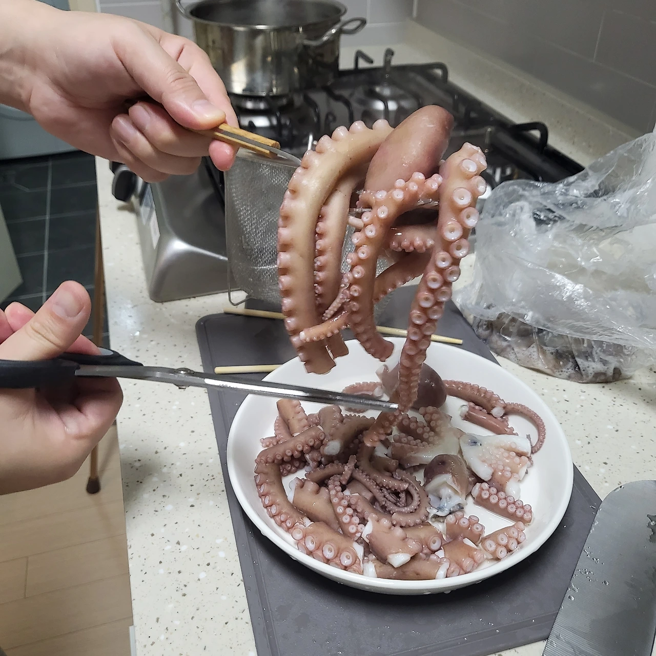 낙지 한 마리는 큰 놈으로 15,000에 구입했다. 낙지를 처음 사보니 이렇게 비싼 재료인지도 처음 알았다.