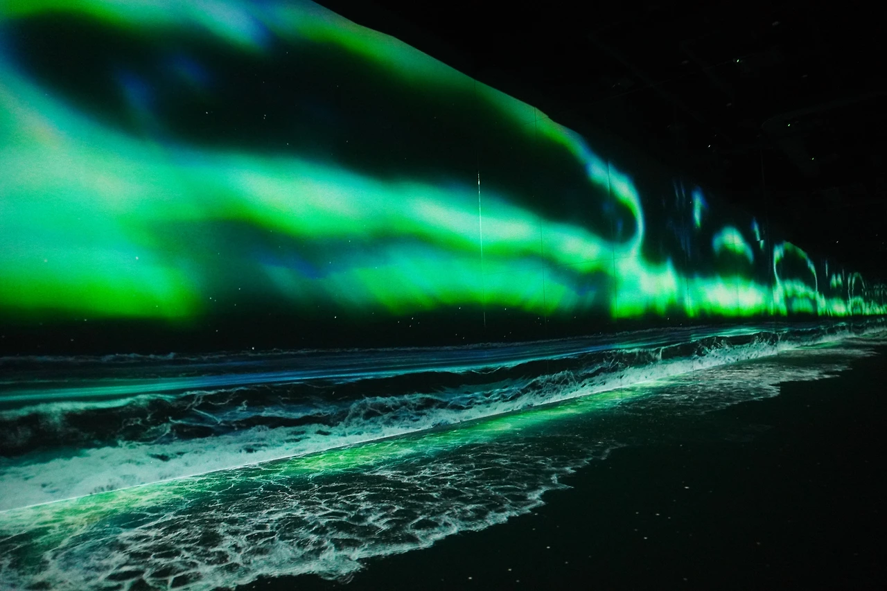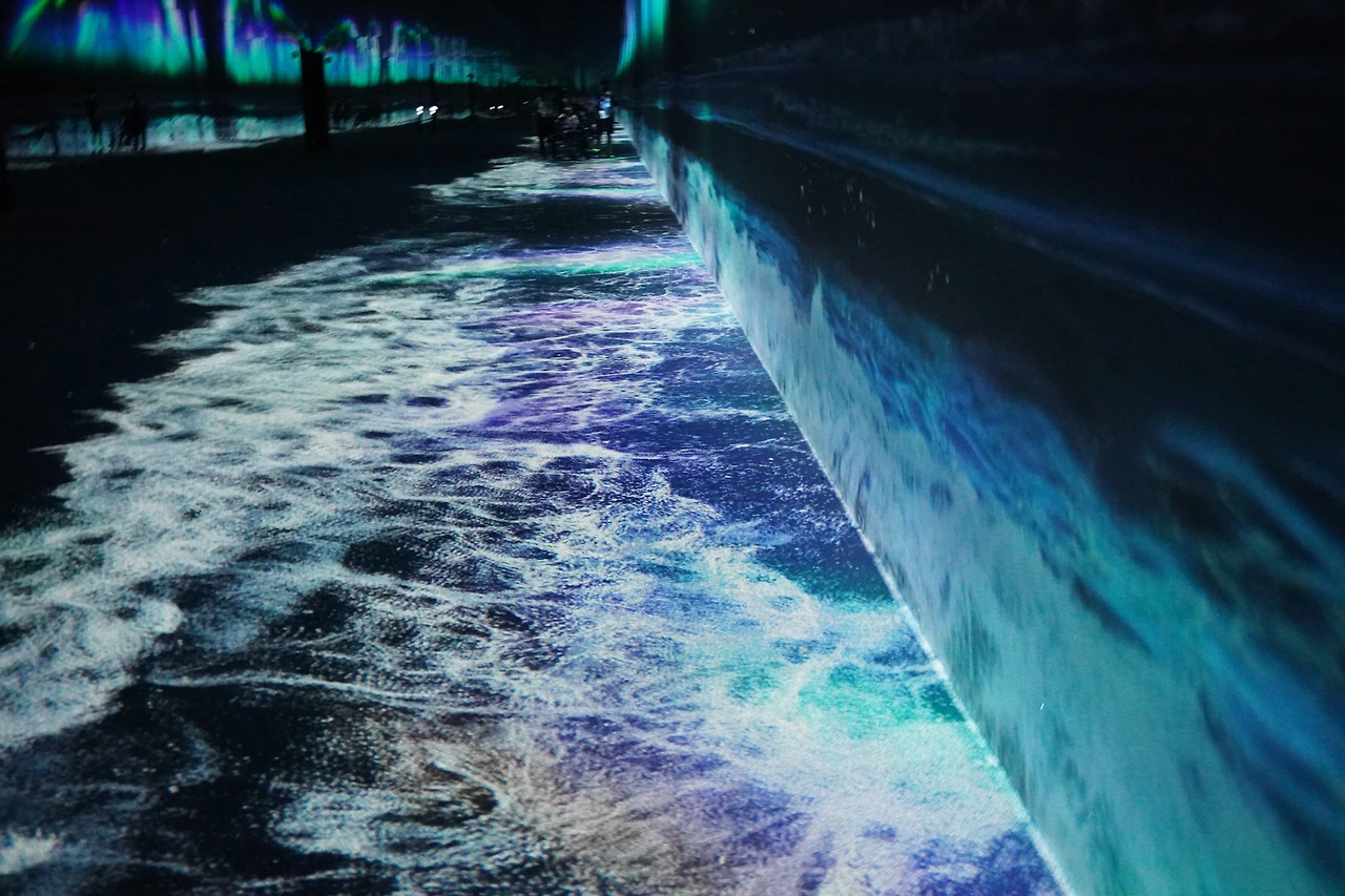 아이슬란드의 오로라를 모티브로 하여 끝없이 펼쳐진 해변가를 표현했다. 정말 해변가에 있는 듯한 실감 나는 파도와 파도소리는 정말 완벽했다. 해변가로 물이 들어왔다 나갔다 할 때 아이처럼 뛰어들어갔다가 발이 물에 젖을까 다시 물러나기도 해 보고, 아무 생각 없이 파도 위에 앉아 있어보기도 했다. 오로라의 신비로운 색감들이 수시로 변하며 특별한 느낌을 선사하는 공간이다.
