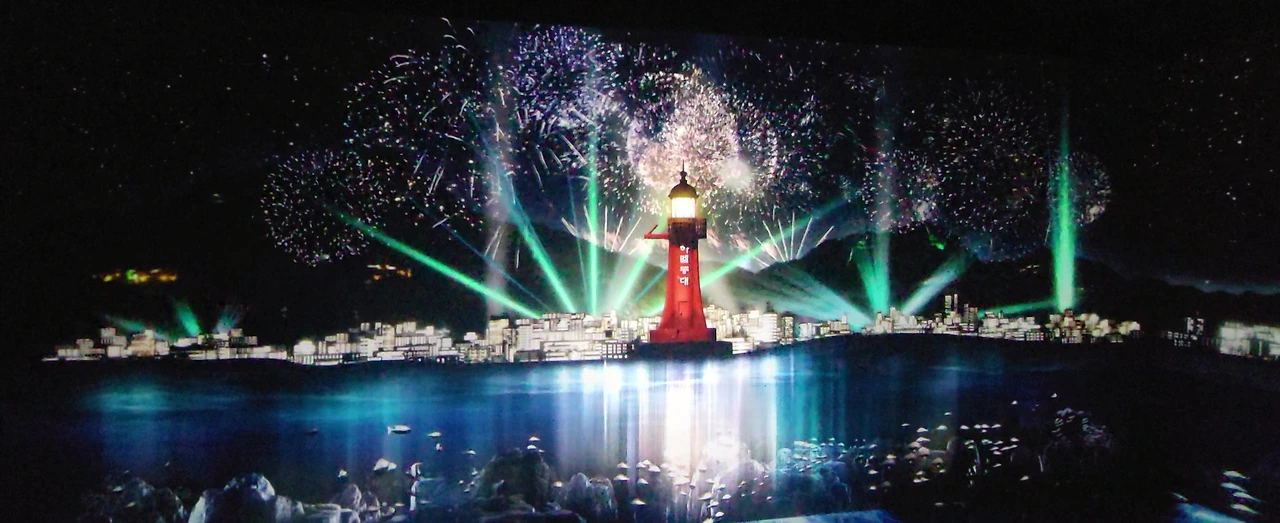 하멜등대를 배경으로 폭죽이 터지는 모습이 낭만적이다.