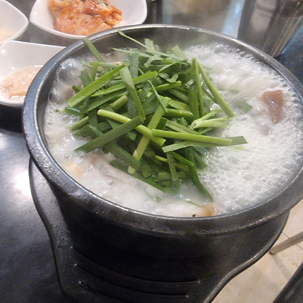 점심시간을 기다려 몰래 동료들의 눈을 피해 직장 근처 순댓국집을 찾았다. 주문을 하고 조금 있자 밑반찬이 나오고, 공기밥이 나왔다. 적당한 허기로 메인 요리를 기다리는 시간마저도 행복했다. 그리고 마침내… 보글보글 뚝배기 한가득 순댓국이 나왔다. 후후 불어 맛본 첫 숟갈은 약간 심심한 듯 그런 대로 좋았다.