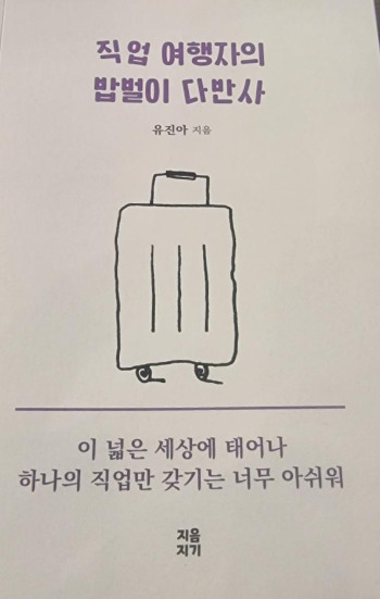 하얀 바탕에 보랏빛 제목, 귀여운 캐리어 일러스트가 눈길을 끈다. 제목은 '직업 여행자의 밥벌이 다반사'.