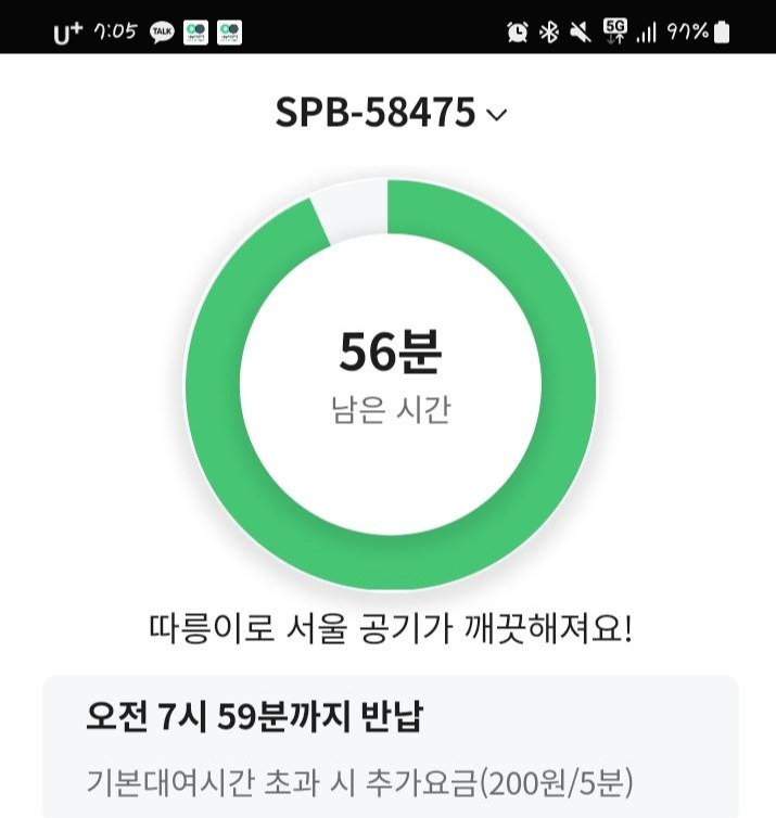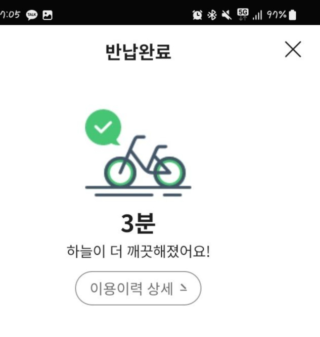 반납 시 나오는 "하늘이 떠 깨끗해졌어요"라는 문구는 정말 그런 것 같아 기분을 좋게 만든다. :)