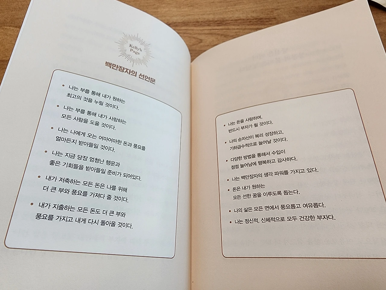 특히 이 부분에서 감동을 받았다. 부자의 역할과 돈의 쓰임새에 대해 부정적인 관념 없이 솔직하게 나열한 것이 인상깊었다. 책에 '백만 장자의 선언문'이 나오는데 한번 소리내어 읽어보길 권한다.
